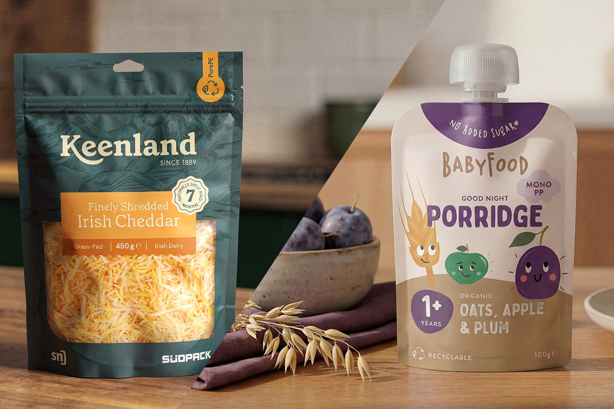 At this year’s interpack, two recyclable pouch concepts from SÜDPACK’s versatile CarbonLite® film family will take center stage at the SN booth (A61 in Hall 6): a PurePE stand-up pouch with a zipper closure for grated cheese and a PP-based stand-up pouch with an integrated spout for fruit purée. Both materials are already designed to meet the PPWR recyclability requirements for 2030, making them a future-ready solution. For pouch production, SN Maschinenbau will present its high-performance FLH 300 hygienic machine, along with the new HSF 100 spouted pouch packaging machine, designed for small to medium output volumes and fast product changeovers.